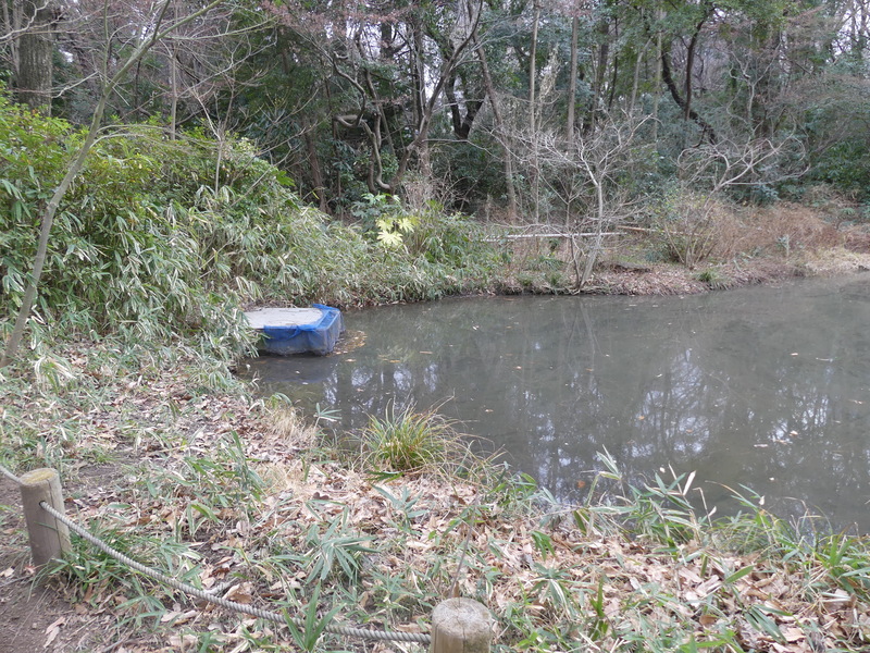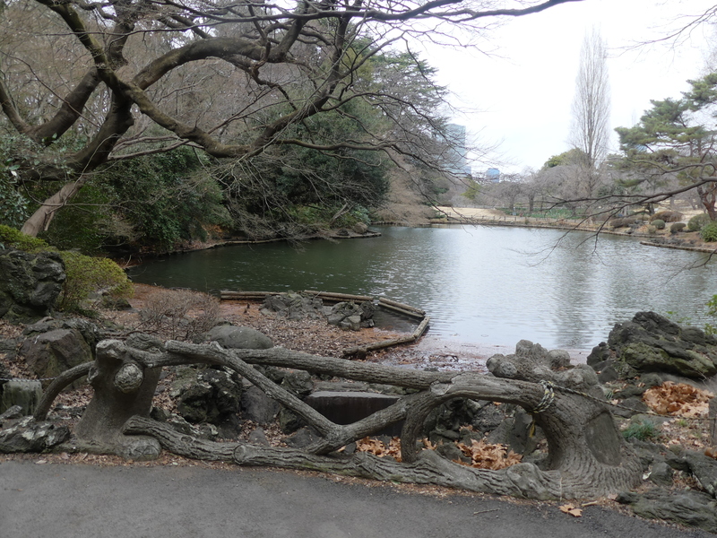 玉藻池「たまもいけ」 工場中ですが大きく迂回し入って見る、手前に梅園、逆回りで新宿御苑ミュージアムから回って来る人が多くなる。ここは大木戸門から近い場所である。