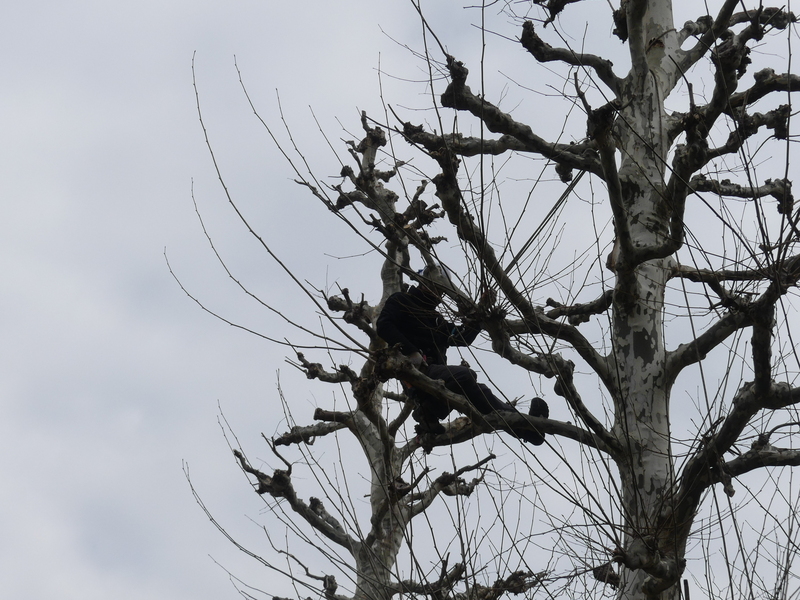 左:バラ花壇 右:整形中のプラタナス