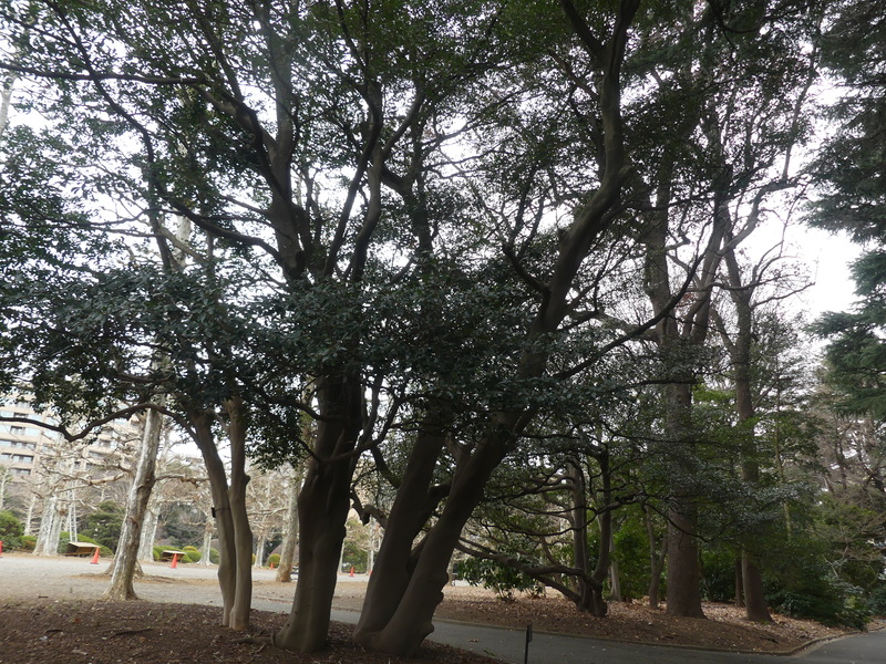 モッコクの大きな木、千駄ヶ谷門・大木戸門・新宿門の分岐、ここは真直ぐに閉門へ、
