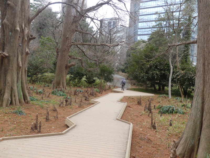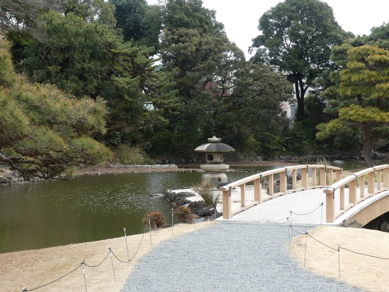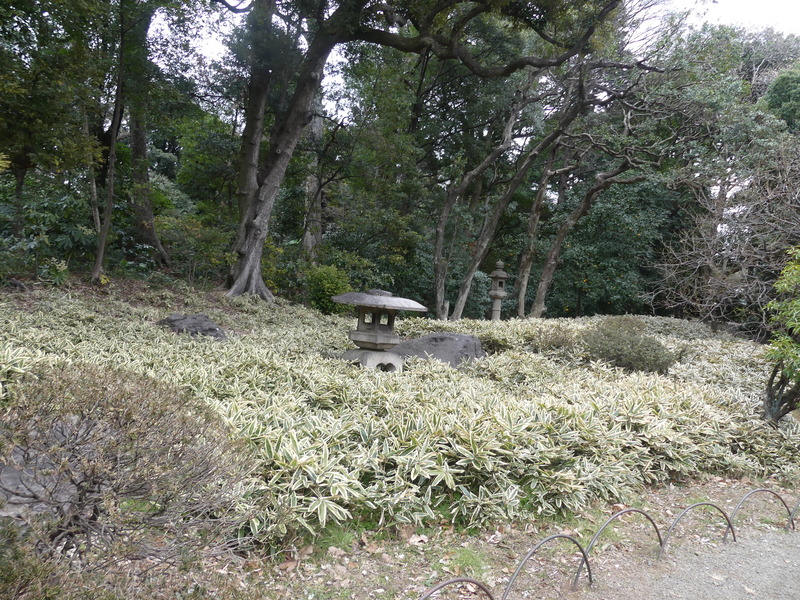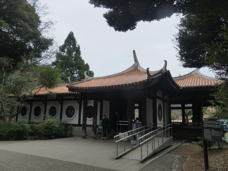 まもなく日本庭園の終わりで、段差を登って行くと旧御涼亭が見えて来る。