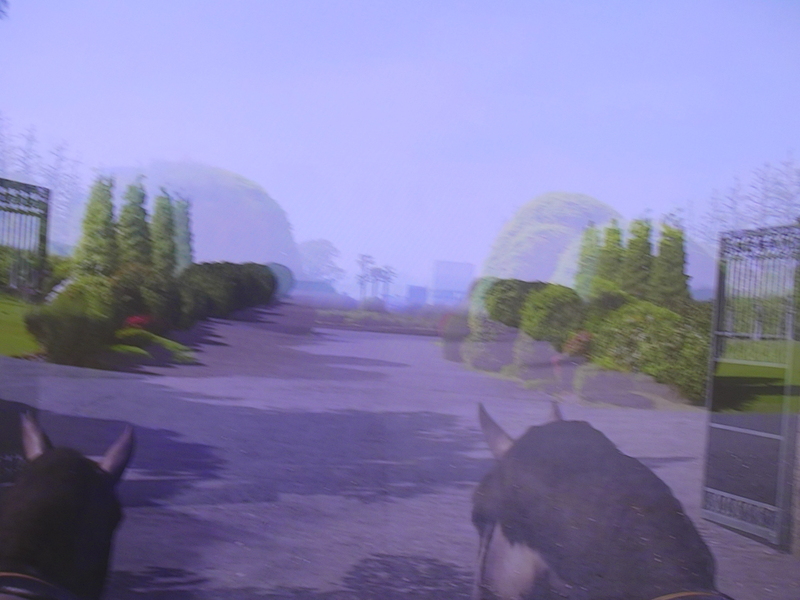 新宿御苑ミュージアムの馬車のご案内 二頭の馬が導く(ボヤケ)