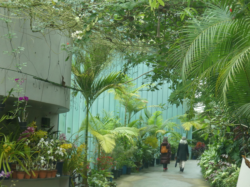 新宿御苑ミュージアムを出て、大木戸門と玉藻池分岐に行かず、二人連れに出会った交差点に戻り、坂道を目指し大きな建物の温室に向かう。