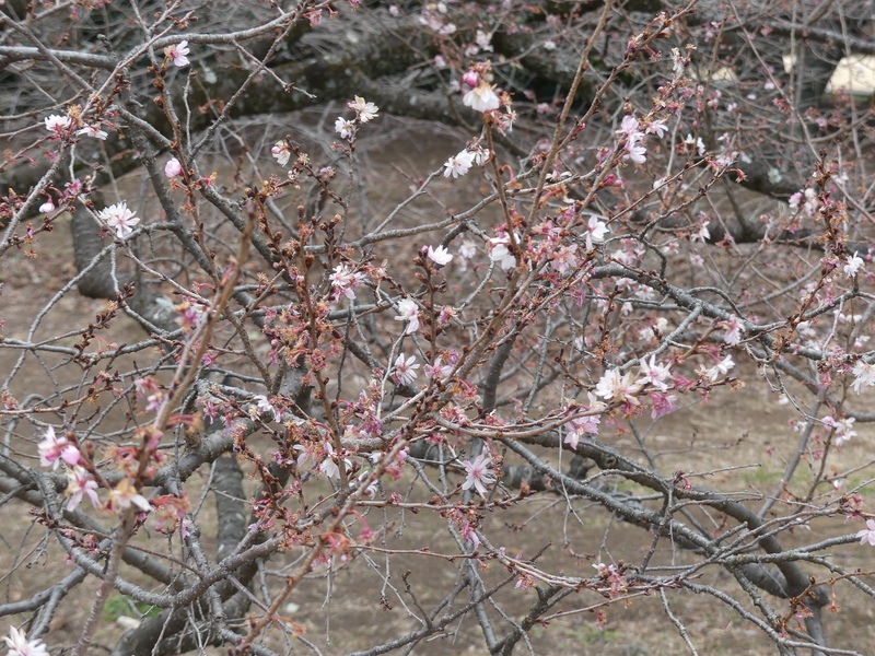 続いて、ご主人自慢の桜を説明、まずジュウガツザクラで10月から咲き出すそうです、だいぶ散りましたが見頃ですね、小さくて撮影はとても難しい!