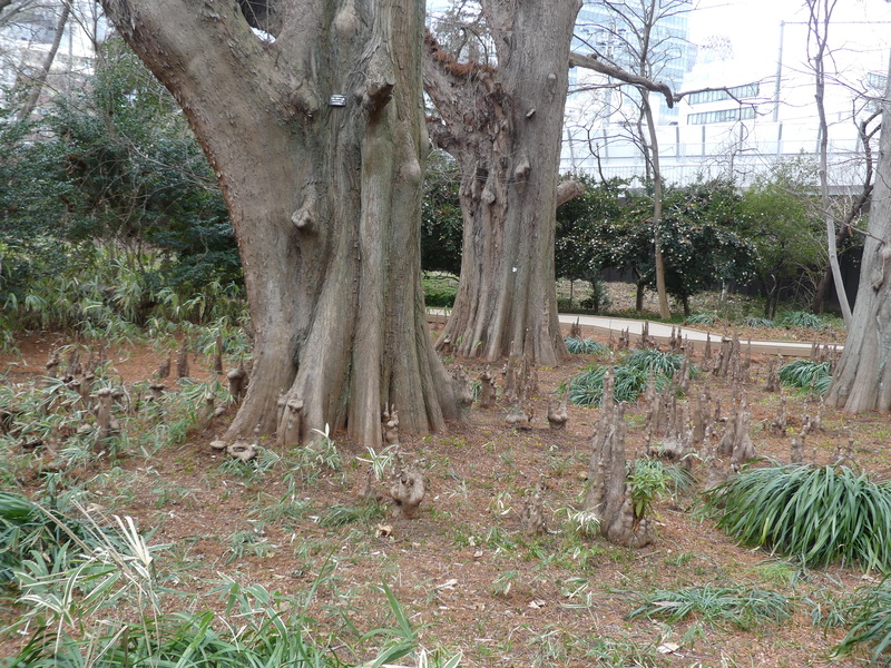 池とラクウショウ(落羽松) 根が飛び出る!
