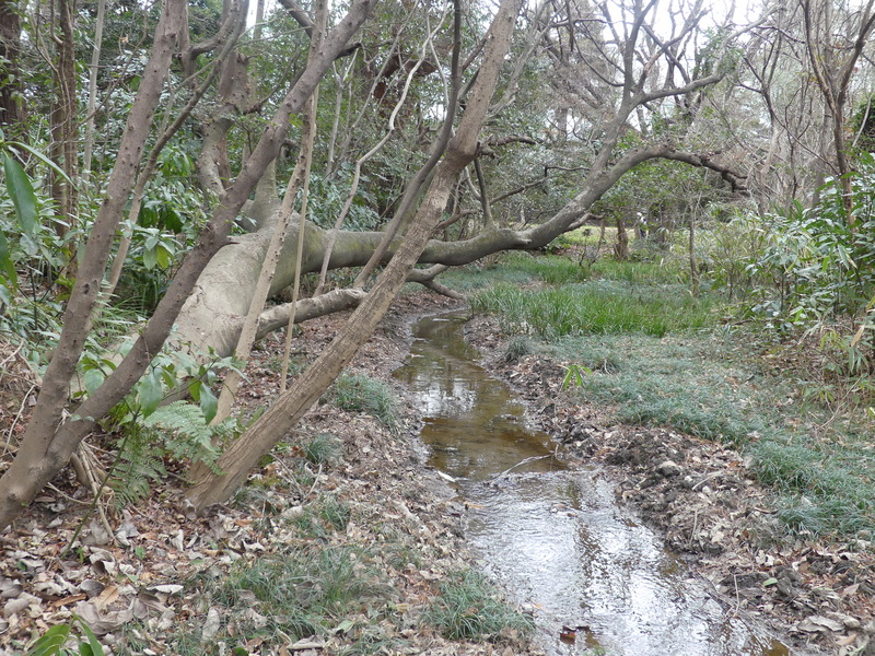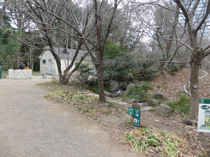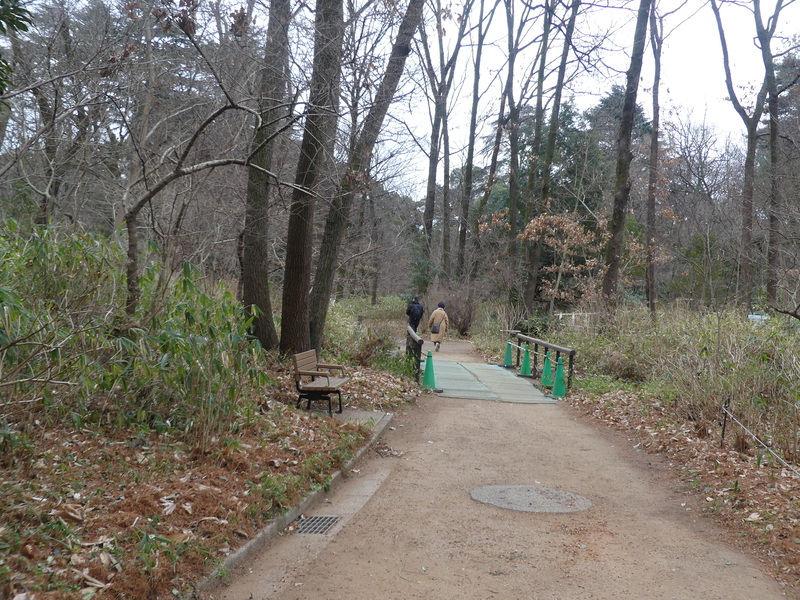 右がかんさつの道でラクウショウの方へ、ここは反対に西休憩所方向に進む。西休憩所内は暖房され訪れる人が少ないのでお弁当を開く14:13