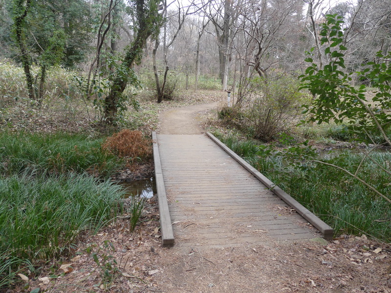 下の池の端に着く、擬木橋