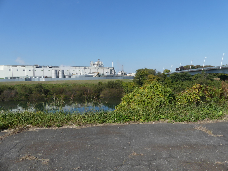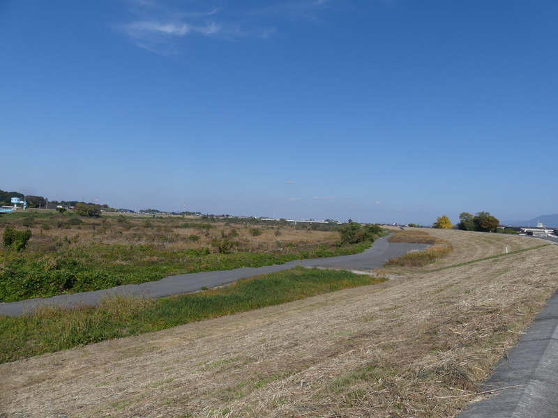 常総市立水海道中学校を右に回り込むと水海道第六保育所が左に、鬼怒川に架かる有料道路(国道354号 岩井水海道バイパス 水海道大橋)を見上げ鬼怒川の手前でサイクリングロードに入る。