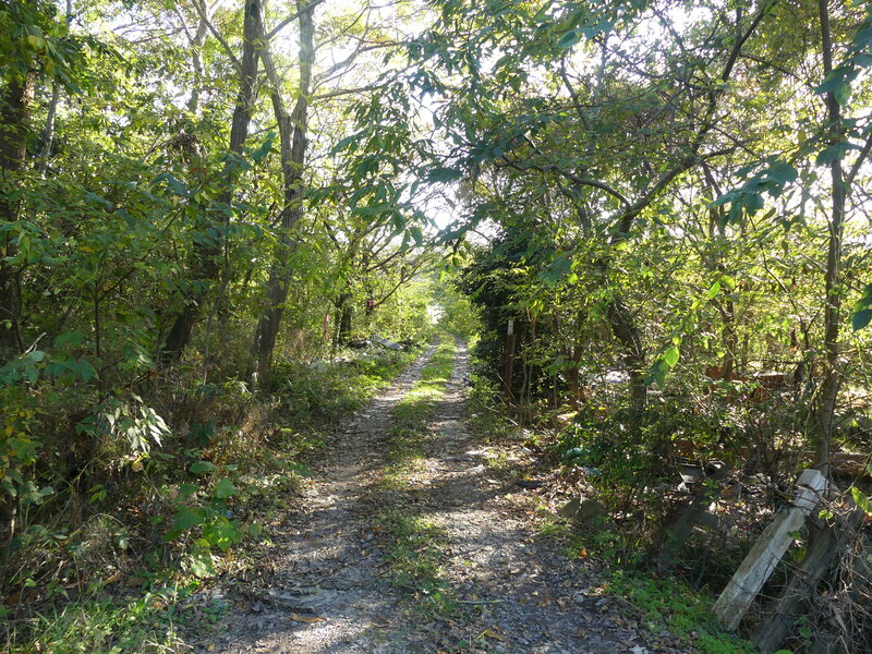 左:サイクリングロード 高砂製紙株式 右:サイクリングロードを進むと砂丘の雰囲
