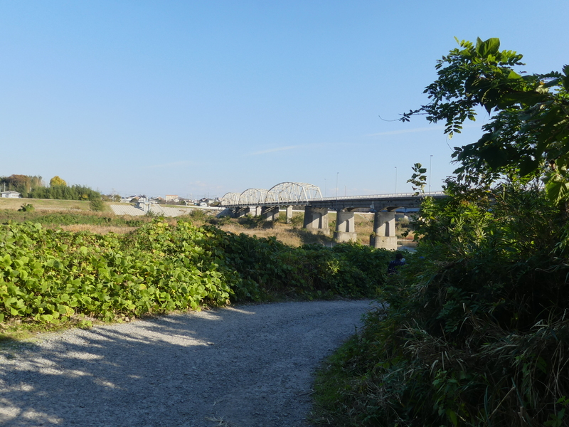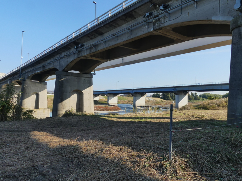 林を抜けると鬼怒川の下流方向に川島橋が見える、直ぐに新川島橋の下に着く。