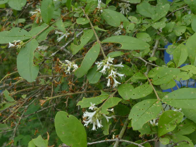 スイカズラと似た花を付けるヒョウタンボク、沢山実をつけている。
