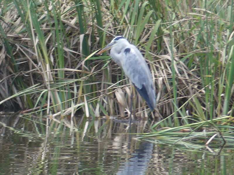 この真夏、水鳥はいない・・・ただ1羽のアオサギが、田舎でも都心でも見る大きなアオサギ、食べる魚が・・・・心配です。