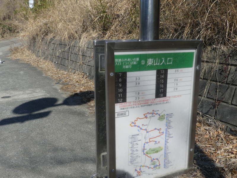 コース 自宅―(0:20)→高崎中央バス停9:20=(南部シャトル)⇒10:10つくばセンター10:10=(北部シャトル)⇒11:05筑波山口11:10=(つくばね号)⇒11:18東山入口11:18―(0:28)→東山三差路11:45―(0:08)→筑波山神社11:53―(0:07)→大御堂・大スタジイ12:10―(0:11)→市営第3駐車場入口12:21―(0:04)→12:24市営第3駐車場入口12:40―(0:07)→12:47筑波山梅林13:58―(0:22)→14:20筑波山口14:30=(北部シャトル)⇒15:25つくばセンター16:30=(南部シャトル)⇒17:02高崎中央バス停17:02→自宅 つくばセンターとTXつくば駅は数分 歩数:13,367歩 <つくバスで筑波山口へ> 今日はつくバス(つくば市営)を利用、南部シャトル・北部シャトルとつくばね号を利用する、TXつくば駅(つくばセンター)〜つつじヶ丘間を筑波山シャトルバスが運行、連休や土日祝はとても混んでいる、今日の10:00発は長蛇の列、 こちらは混んでいるが筑波山口の終点で降りた人は、若い男性・ご夫婦の外人・ご夫婦の一般人と私の計6人、ご夫婦の一般人はつくばね号の沼田上坪バス停まで歩いたようです。 詳細はつくば市のホームページを見て欲しいが:「料金が安い、つつじヶ丘まで行かない、車が無い、のんびり楽しみたい、早朝登山(風景は朝夕が魅力)・・・免許返納、高齢者で、自由に歩けない」・・・・・ 筑波山口にて、外人の方がつくばね号を選んでここまで来られ、運転手さんや事務所に尋ねている・・・・・・若い男性も私も応援して筑波山神社入口バス停まで、彼らに観光案内所に立ち寄ることを進め。入口から入っていった姿を見て安心する。 彼らにはこの後再開は期待したが会えませんでした! <東山入口> 筑波山神社で残された乗客は私だけ、東山入口バス停へ、ここは女体山へ向かうコースとつつじヶ丘へ向かうコースが近い、終点まで行くとつくばの湯があり、下山で日帰り温泉が楽しめる、登山用もある、数台と停められているがガラガラ!