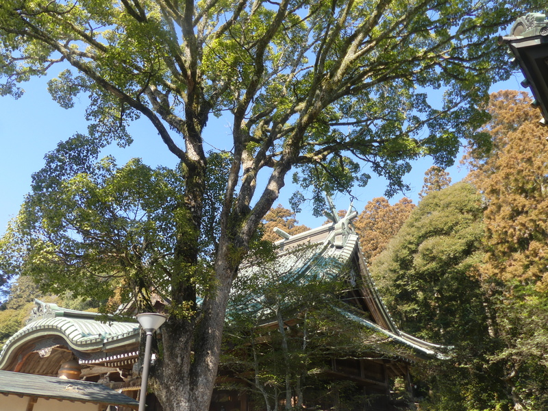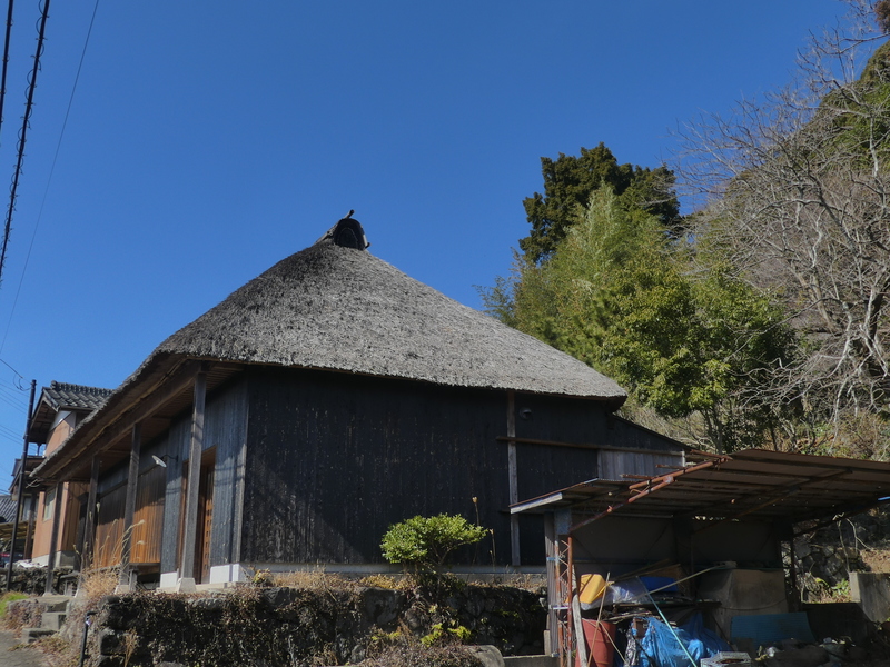 左:からぶき屋根 右:登山口の鳥居 女体山・つつじヶ丘へ向かうコース ここは左折、坂の途中にからぶき屋根のお家がある、縁側に腰を下ろし展望を楽しむ、宝篋山が小さく見える。 東山の坂道を登り切って最初の角で上を眺めると登山口の鳥居が見える、女体山へ登った人は通過していう。 <筑波山神社>
