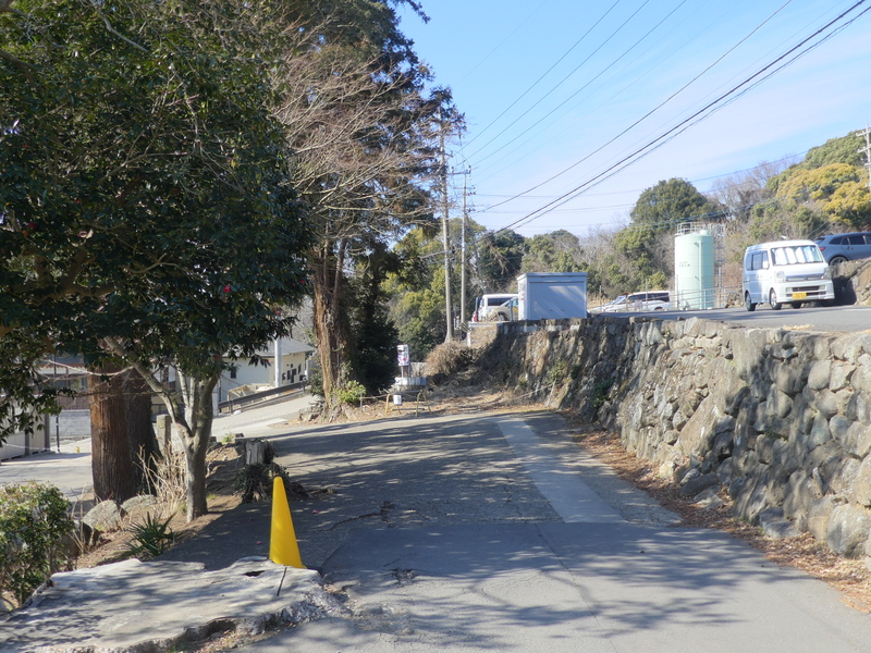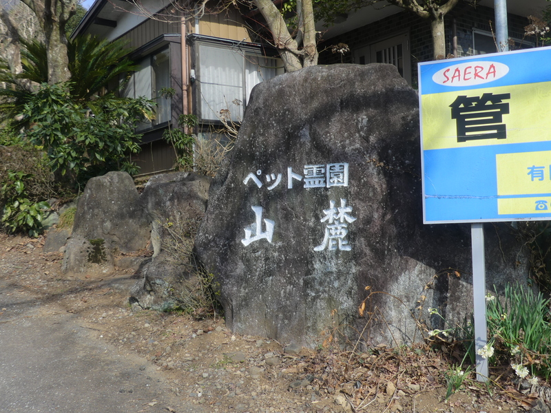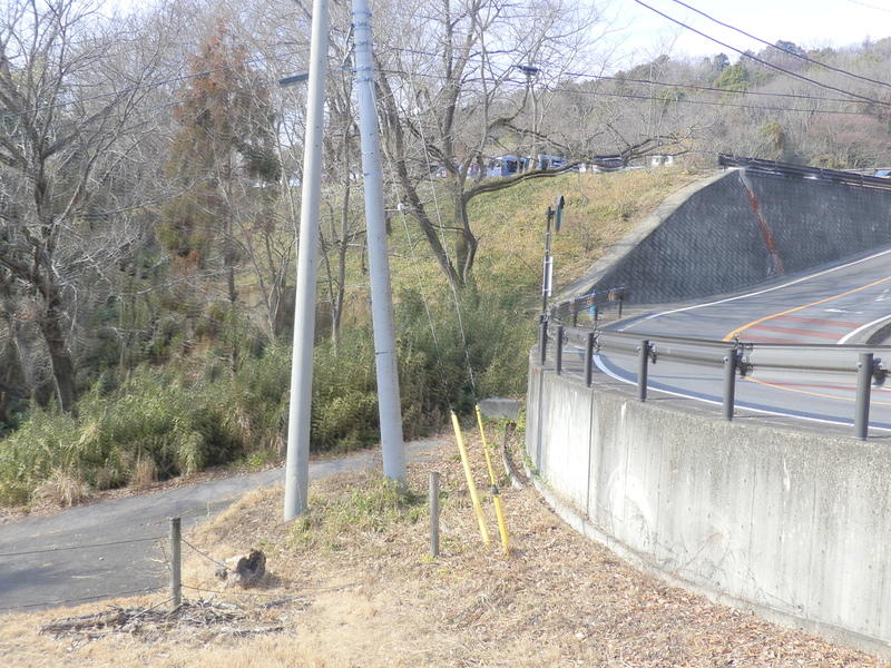 左:市営第1駐車場 右:県道笠間つくば線の出合 ここで下る道は無いが、道標の先にゆるい傾斜を下ると県道笠間つくば線への道路(県道42 筑波山梅林の正門や筑波山神社へのバス道路です)に入れます、駐車場と墓地が並ぶ。ここで同行者に抜かれる。 県道笠間つくば線への道路の出会いはペット霊園山麓入口、市営第1駐車場から数分の急坂、舗装され車も入れます。