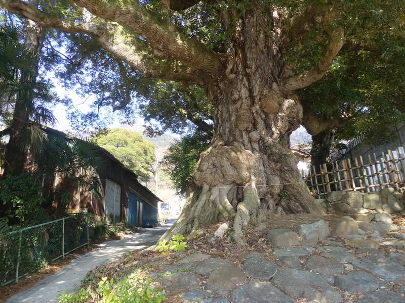 左:大御堂 右:大木のスタジイ 大御堂の大展望。暖か過ぎて富士山は望めない、大御堂の駐車場から大木大木のスタジイへ、二本並んでおり、ケーブルや御幸ヶ原コースへ向かう時のこの下を通過する。 ここから筑波山神社入口バス停(大鳥居)方向へ向かう、亀の井ホテルの前の市営第3駐車場入口の道標を目指す。 <市営第3駐車場>