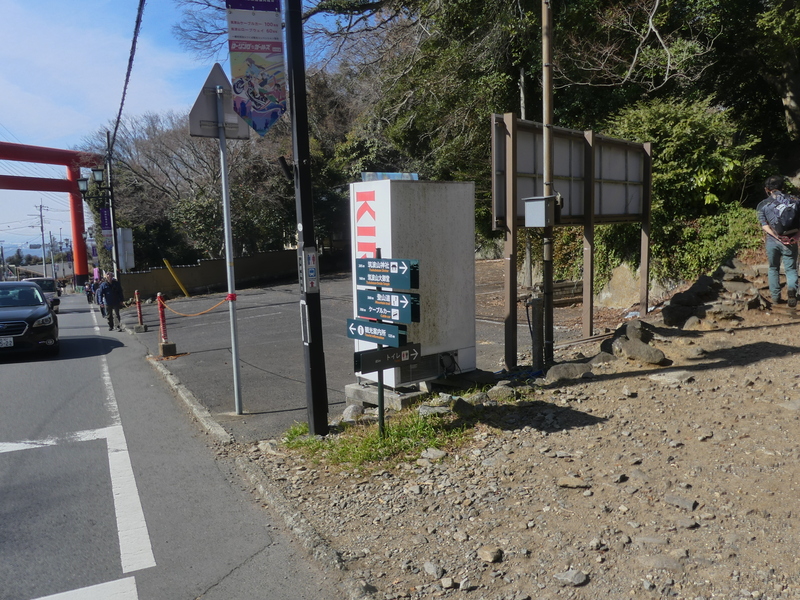 左:市営第3駐車場入口 右:市営第3駐車場から筑波山梅林の市営第3駐車場から筑波山梅林の老人道路 市営第3駐車場入口の道標、大鳥居が見える、ここに入り市営第3駐車場へ歩き憎い道、公衆トイレがあり、子供連れのご夫婦と駐車場を横切り、市営第3駐車場から筑波山梅林へ向かう坂を登る、この急な坂まで、お母さんに抱っこされたお嬢さんが一人で筑波山梅林へ歩いていったようです、老人道路では無いらしい! <筑波山梅林>
